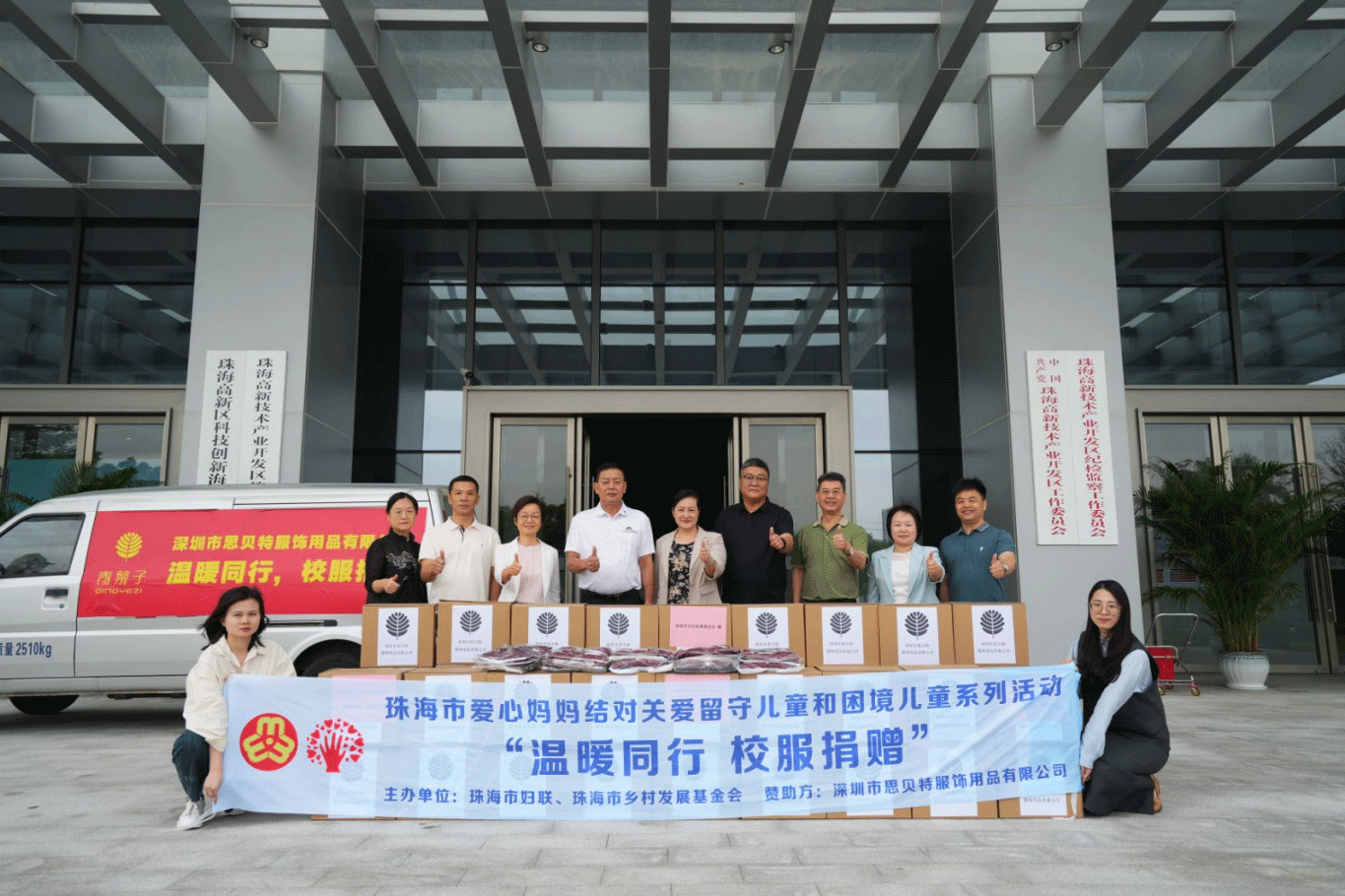 珠海市妇联党组书记、主席杨红梅,党组成员、副主席李惠,市乡村发展基金会理事长唐成伟,副理事长兼秘书长丁伟庭,深圳市思贝特服饰用品公司行政总监杨春刚出席。该批次校服和运动服由深圳市思贝特服饰用品公司捐赠,据统计,此次捐赠活动共惠及金湾区和高新区250名困境儿童,慰问校服和运动服660余套,价值约9万元。